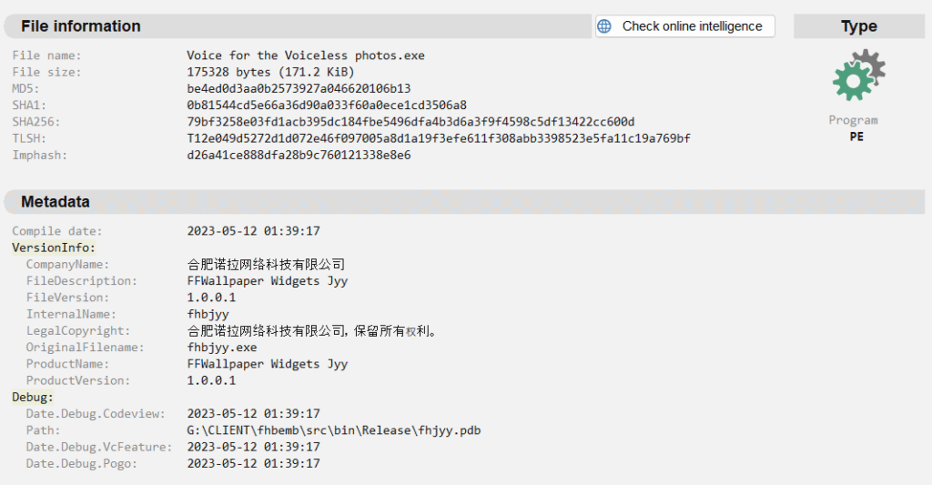 - Company Name: Hefei Nora Network Technology Co., Ltd. -> No company with this name was identified, but it has been used in other Threat Actors China-Nexus campaigns.
