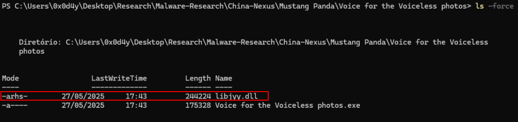 In this research, I will explore a campaign by Threat Actor Mustang Panda, identified in June 2025 by IBM’s X-Force, which targets the Tibetan community for obviously political reasons. The initial loader is delivered via a .ZIP file containing a decoy named ‘Voice for the Voiceless Photos.exe‘, a clear reference to the Dalai Lama’s book, and a DLL that doesn’t appear in Windows Explorer through the dir and ls commands.
