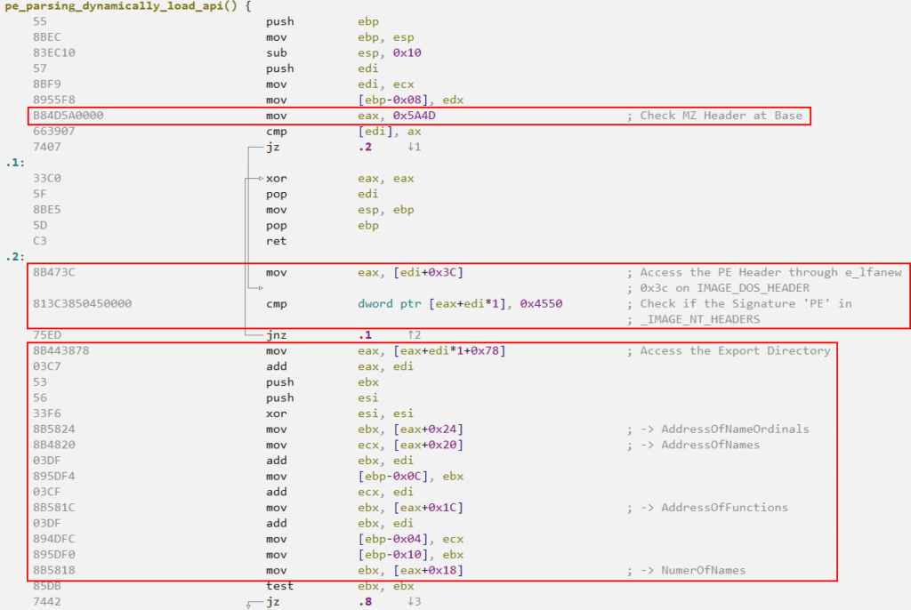 In the image below, you can observe the entire flow of the pe_parsing_dynamically_load_api function.