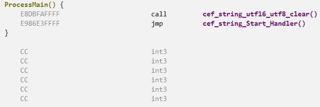 Let’s start with the first function, named cef_string_utf16_utf8_clear by the sample itself. Below, we can observe its execution flow in a macro view.
