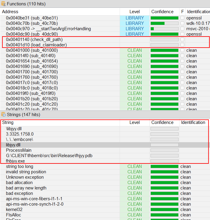 Following the same screening flow, we open libjyy.dll, we can observe some interesting information.